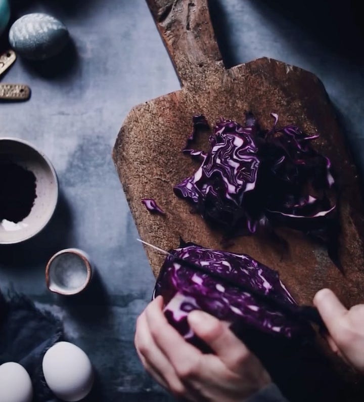 SEE: How to Dye Eggs Naturally. We LOVE anything Linda Lomelino creates—her mood, her lighting, the way everything feels both cozy and cinematic—and this beautiful tutorial on natural Easter egg dyeing has us completely hooked. Using simple, kitchen-based ingredients, she transforms red cabbage into a dreamy range of blues: just simmer chopped cabbage with water, then add vinegar and a pinch of salt before straining into jars. For a soft blue, let eggs soak as is; for that stunning teal, stir a little baking soda into one jar (a little color chemistry magic at play). The longer the eggs sit—from 20 minutes to overnight—the deeper and richer the color becomes. You can even create a marbled effect by gently rubbing the eggs while dyeing. She also plays with blueberry powder for moody greys and purples, proving that natural dyeing can feel both elevated and playful. It’s simple, sensory, and the kind of slow, hands-on ritual we’ll be leaning into this weekend. 🥚