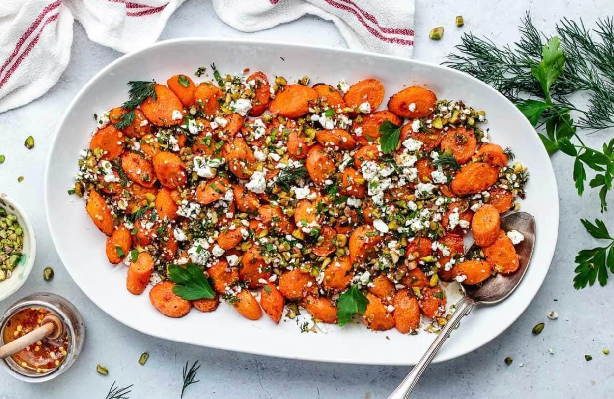 BONUS TASTE: Roasted Carrots with Hot Honey, Pistachios, and Feta. I tried this recipe for Easter and everyone LOVED it! I used peanuts instead of pistachios (my dad is allergic to tree nuts)–the crumble and hot honey were so yummy! Next time you are looking for a side dish, give this one a try.